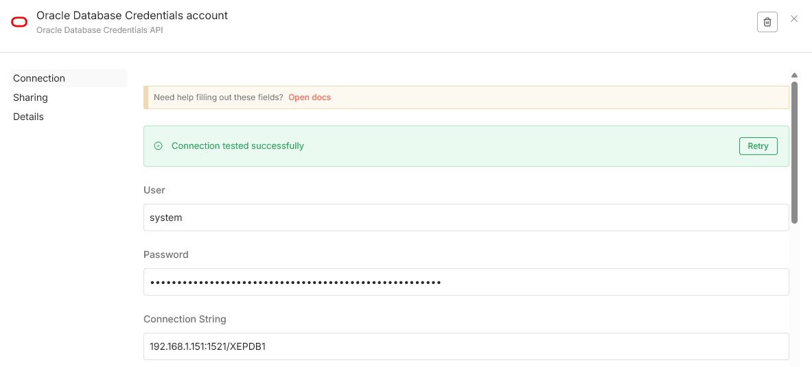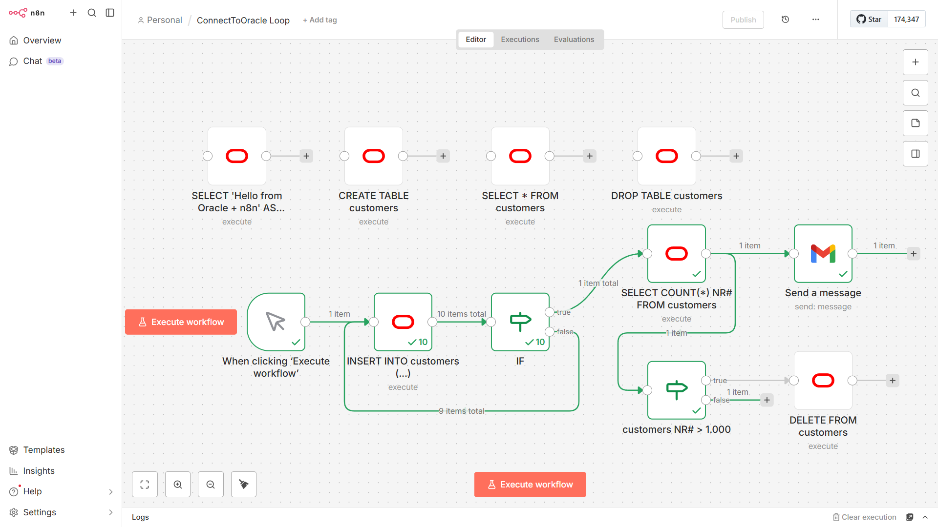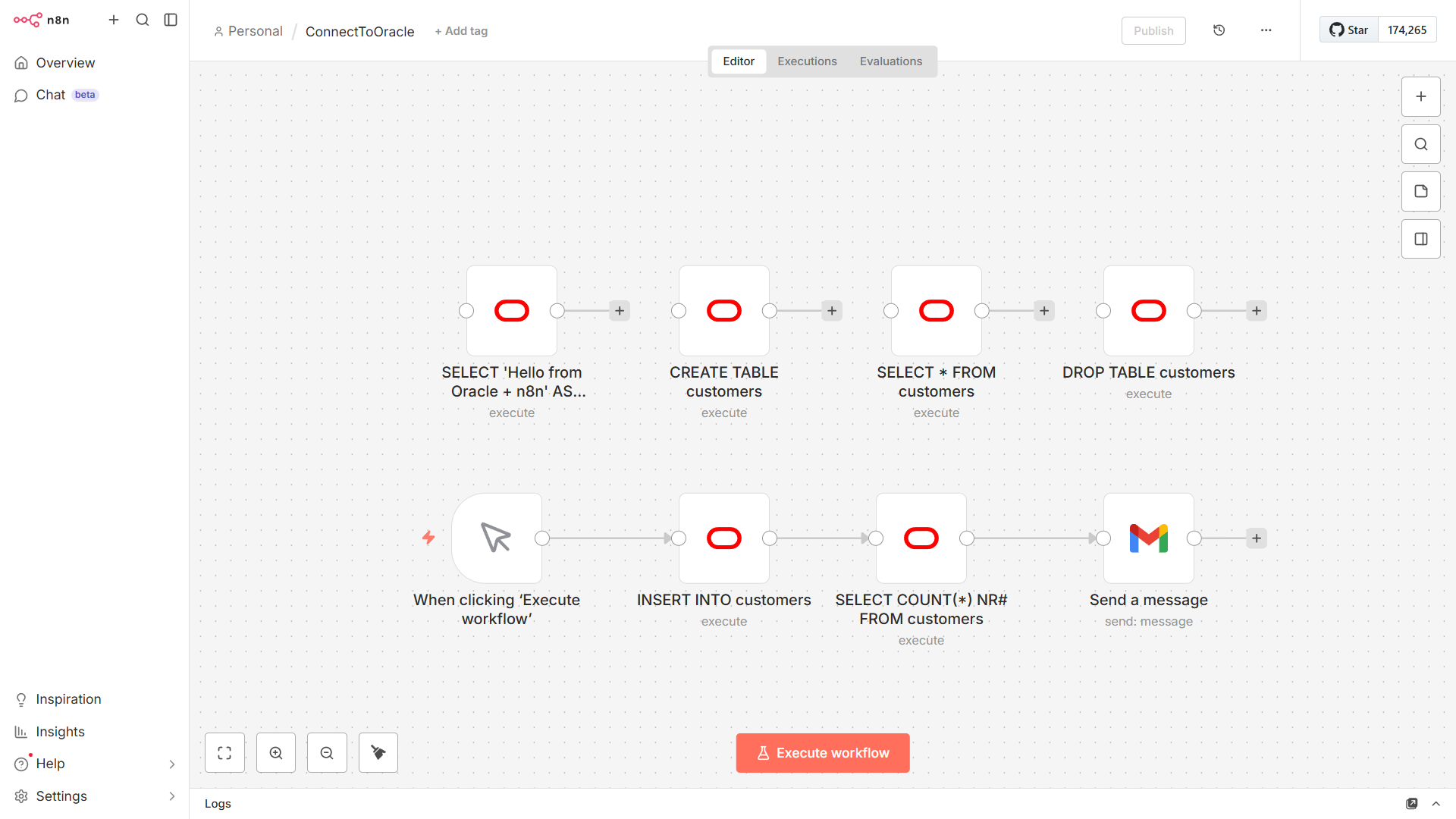 SELECT ‚Hello from Oracle + n8n‘ AS message FROM dual