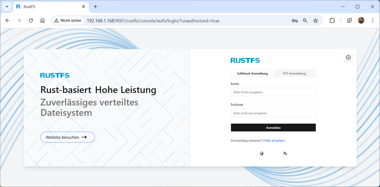 91aa798437f2 docker.io/rustfs/rustfs:latest rustfs 6 seconds ago Up 6 seconds 0.0.0.0:9000-9001->9000-9001/tcp RustFS