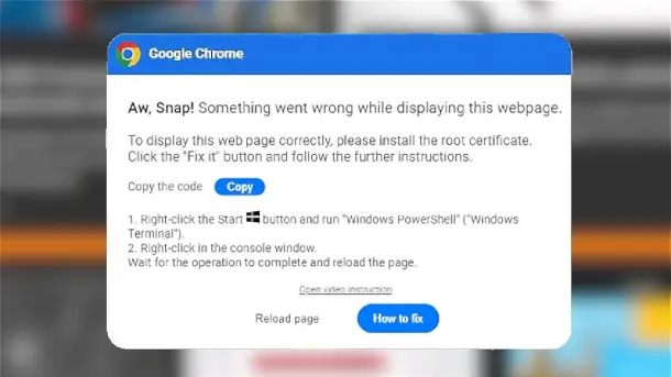 Mittwoch, Juni 19th, 2024Vermeintliche Fehlermeldung des Google Chrome Browsers mit verschiedenen Anweisungen und es suggeriert ein Problem und liefert gleichzeitig eine Lösung in Form eines PowerShell Befehls den das Opfer nur noch kopieren und ausführen muss