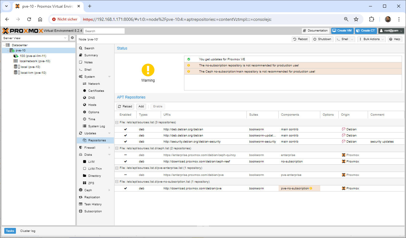Mittwoch, Juli 10th, 2024Proxmox Virtual Environment (VE) 8.2.4 – update with No Subscription Repository