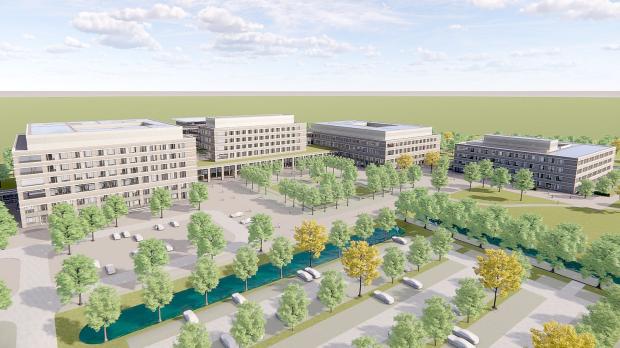 Zentralklinikum Aurich-Emden-Norden – Start für einen Neubau der rund 800 Betten zählen soll wird nach Angaben mit rund € 460 Millionen aus Bundes- und Landesmitteln gefördert die Gesamtkosten belaufen sich nach Angaben der Landesregierung von 2023 auf fast € 800 Millionen