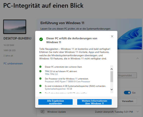 Dienstag, Dezember 10th, 2024Microsoft Windows 10 – überprüfen sie ob ihr Gerät die Windows 11 Systemanforderungen erfüllt