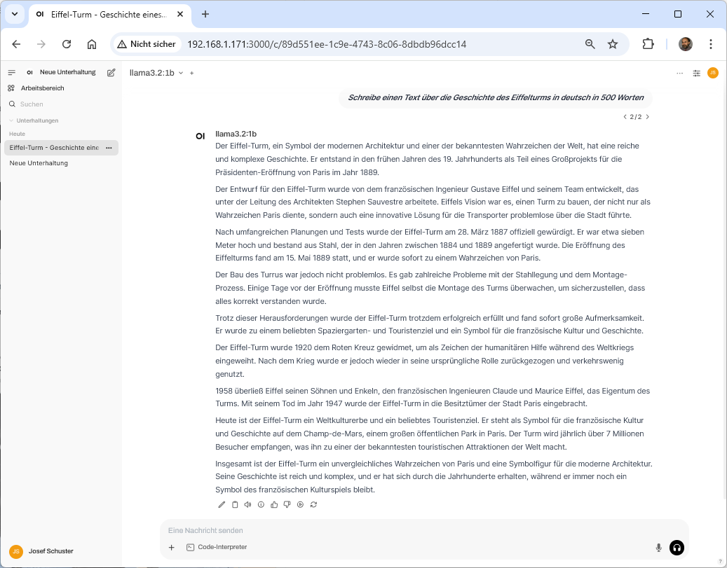 >>> Schreibe einen Text über die Geschichte des Eiffelturms in deutsch in 500 Worten