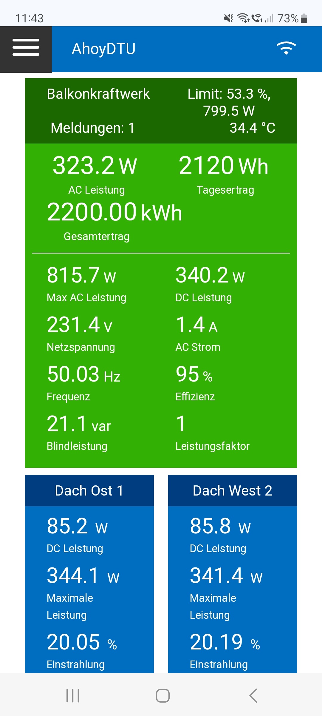 Wechselrichter Hoymiles-HM-1500 – 2.200 kWh mit 4 Modulen a 425 W in Ost/West Ausrichtung seit dem 01.07.2023 geerntet