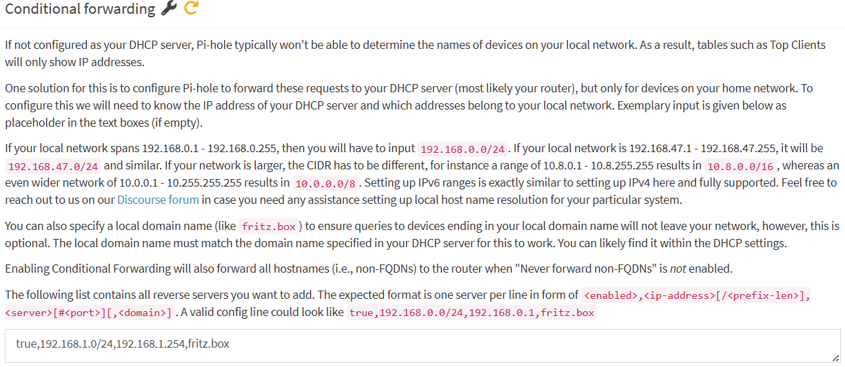 Freitag, März 21st, 2025Pi-hole ‚conditional forwarding‘ – if not configured as your DHCP server so Pi-hole typically won’t be able to determine the names of devices on your local network as a result tables such as Top Clients will only show IP addresses