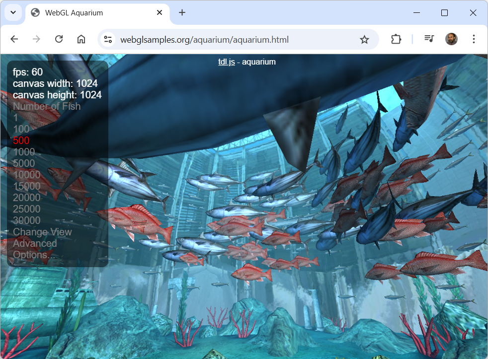 Dienstag, April 29th, 2025WebGL Aquarium – is a native implementation and the goal of this project is to compare the performance of WebGL version to its native counterparts