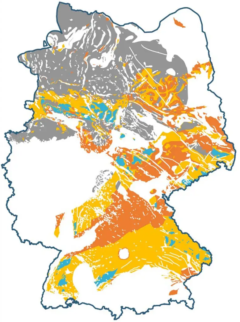 Die Karte zeigt den aktuellen Stand der BGE Endlagersuche – Türkis gefärbte Gebiete gelten nach den ersten Prüfschritten als geeignet gelbe und orangefarbene Gebiete gelten als nicht geeignet oder nur gering geeignet die graue Gebiete werden noch geprüft und weiß bedeutet keine Teilgebiete da laut BGE keine günstigen geologische Voraussetzungen erwartet werden