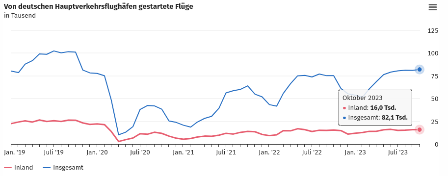 Montag, November 17th, 2025Innerdeutsche Flüge machen inzwischen einen geringeren Teil am Flugverkehr in Deutschland aus als im Vor-Corona-Jahr 2019 gemessen an der Zahl der Flüge als auch an der der Passagiere