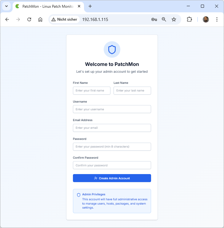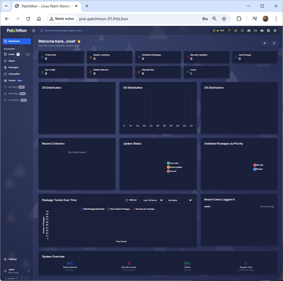 • Visit your URL: http://pve-patchmon-01.fritz.box (ensure DNS is configured)