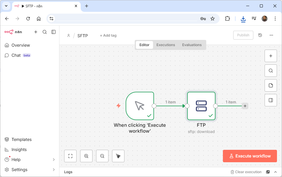 AI Workflow Automation N8N 2.4.6 – add the FTP node to your workflow